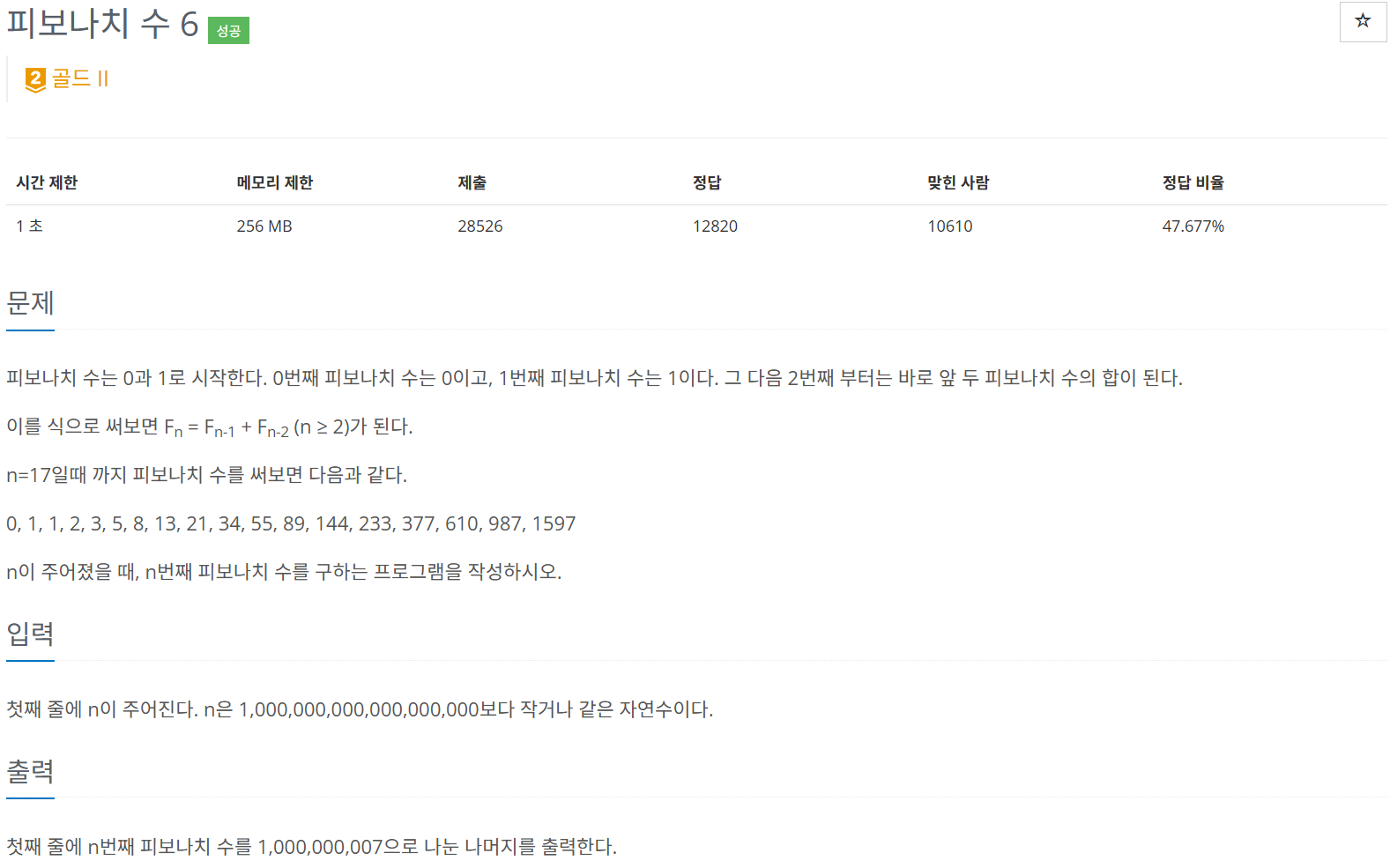 ํผ๋ณด๋์น ์๋ฅผ 1e9+7๋ก ๋ชจ๋๋ฌ ์ฐ์ฐํ์ฌ ์ถ๋ ฅ