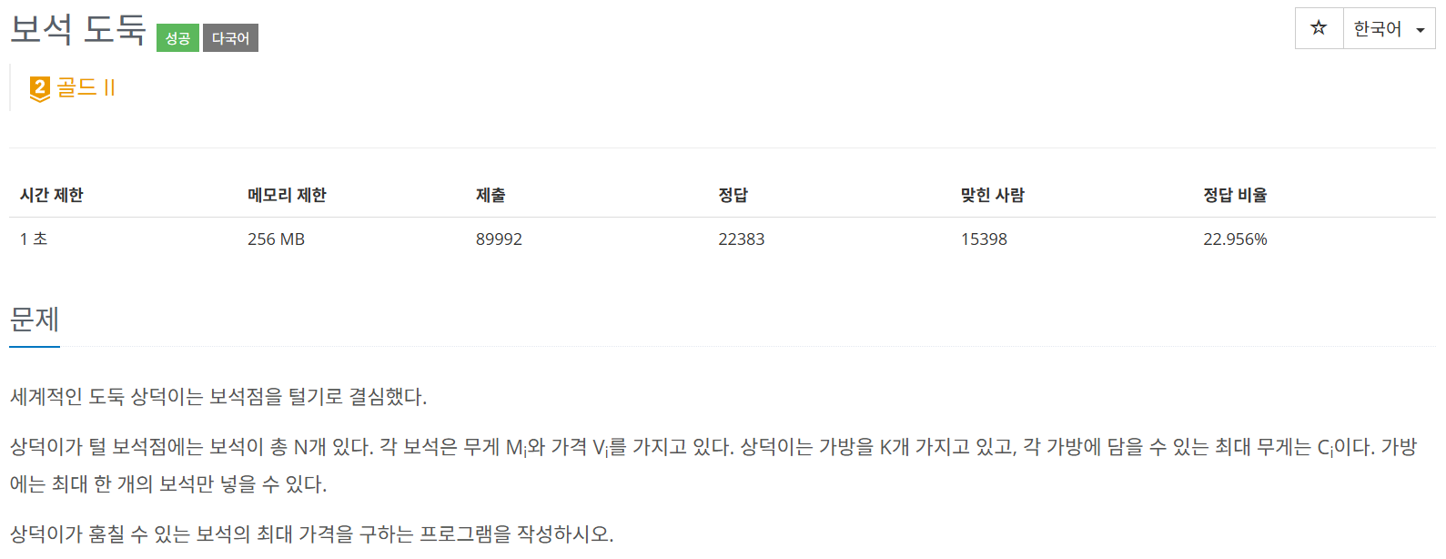 [Java] BOJ 1202 - ๋ณด์ ๋๋Problem Solving/Baekjoon Online Judge (BOJ)2025. 5. 6. 14:21