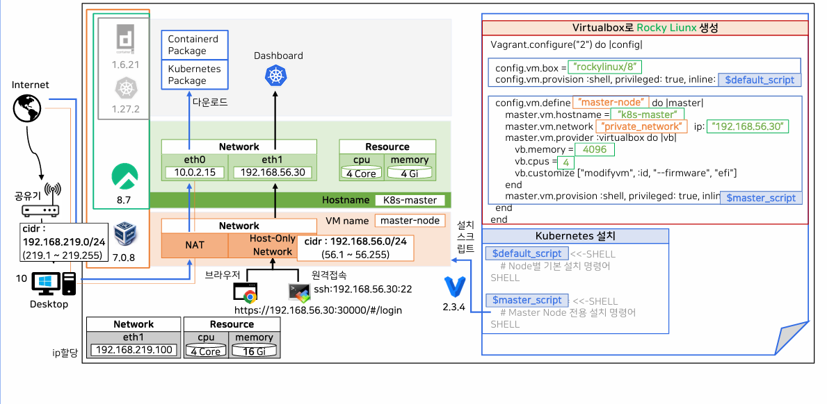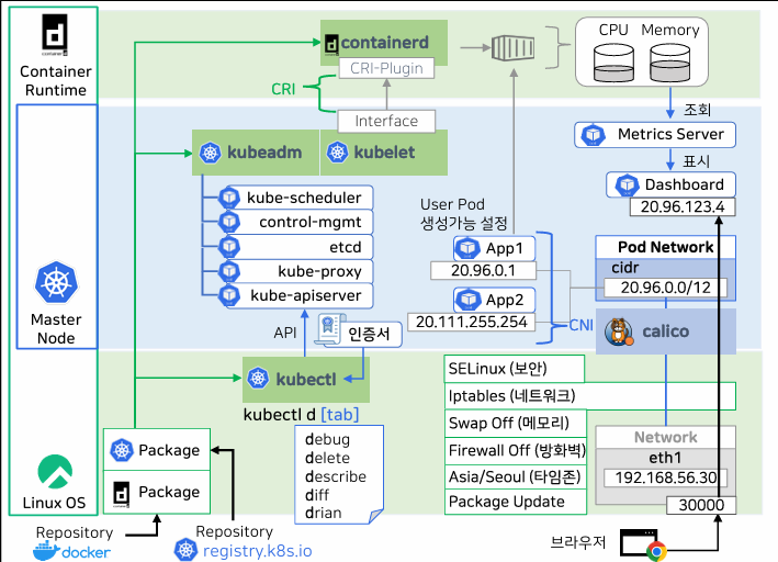 1. Cluster 초기화 (Pod Network 설정) -> CIDR를 지정해 네트워크 대역을 잡음