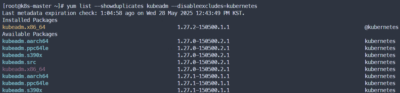 > 설치 가능한 버전의 kubeadm 리스트 확인