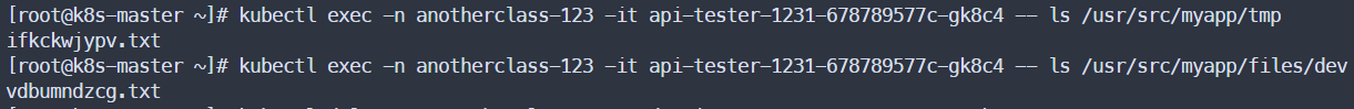 `/usr/src/myapp/files/dev` 디렉터리는 Volume을 Mount 시켰기 때문에 Pod가 종료되어도 파일이 유지되지만,