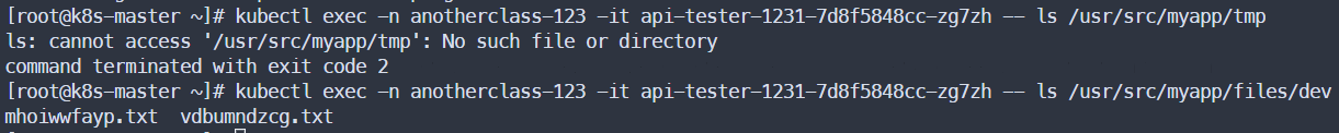 여전히 `/usr/src/myapp/tmp`은 Container의 내부에만 존재하므로 Pod가 종료되는 순간 내부의 파일은 삭제된다.