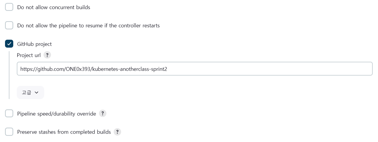 지정된 Repo의 2213 디렉터리의 내용만 가져오고, 2213 디렉터리의 Jenkinsfile을 Script로 사용하도록 지정