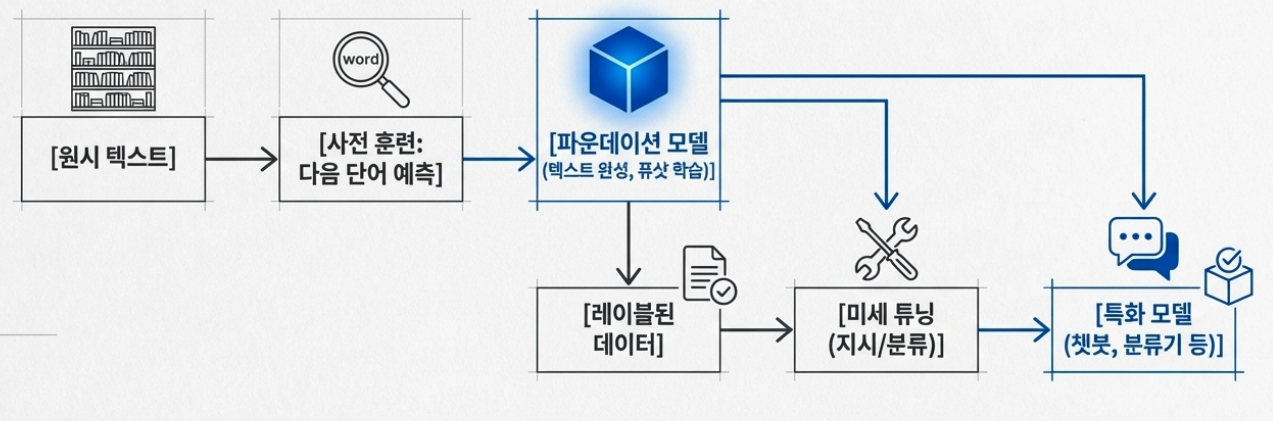 이 과정을 통해 만들어진 모델을 베이스 모델(Base Model) 또는 파운데이션 모델(Foundation Model)이라고 부른다.