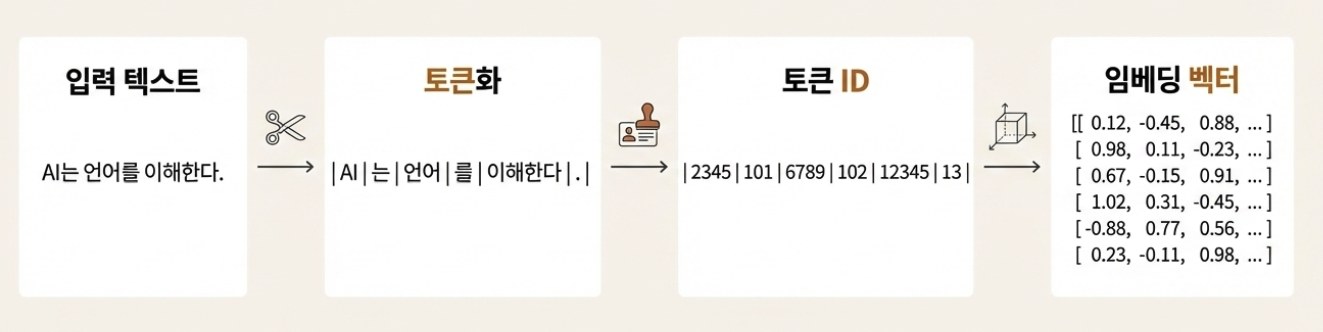 Tokenizer가 텍스트를 Token ID로 변환하고 LLM 모델이 Token ID를 Token Embedding으로 변환하는 것이다.