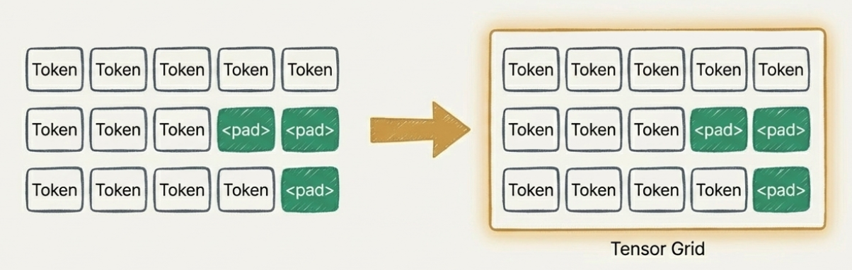 하지만, Tensor는 모든 원소의 길이가 동일해야 하는 고정된 형태의 데이터 구조이기 때문에, 길이가 다른 문장을 처리하기 힘들다.